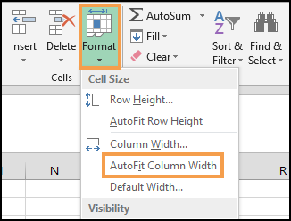 Select A to highlight the column, followed by Format from the Home tab and choose AutoFit Column Width.