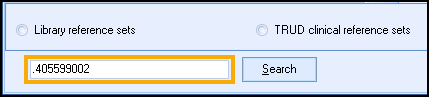To search by SNOMED CT code enter a full stop directly followed by the SNOMED CT code into the Search box, then select Search.