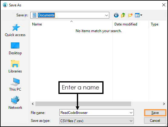 Note - You must save the Codeset File for this option to display. - At the prompt, enter a name for the file.