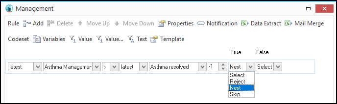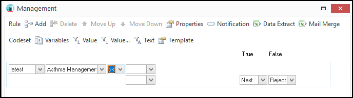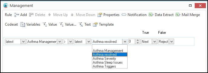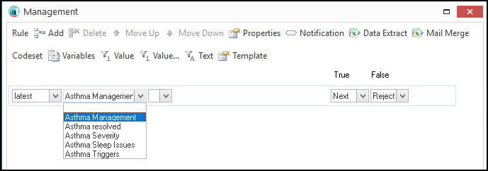 - Select the appropriate Codeset from the drop-down, for example, Asthma Management.