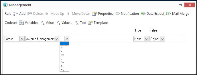 - Use the parameters and operators explained below to build up the Rules for the select Rule Node.Note - A Rule List can range from one rule to multiple however there must be at least one Select and one Reject outcome in the The True and False actions control the outcomes of the Rule Line. A Rule Node must finish with a Select or Reject statement, either in the True or False position..