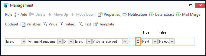 - Next - Moves the result of the Rule Line down the next Rule Line to evaluate.