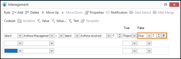 - Skip - Takes the result of the Rule Line and skips the number of Rule Line(s) as specified in the control: