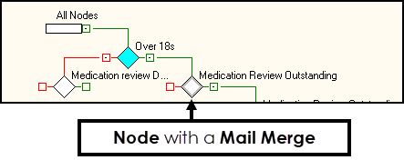 Select OK. Rule Nodes with a mail merge function attached display with a grey border: