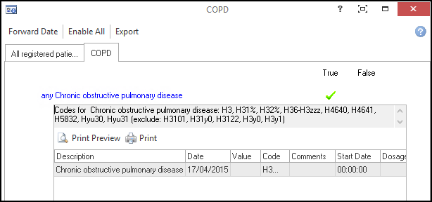Any links display in blue, select to view further information and to access the clinical term in the patient's record.