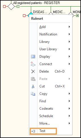 The Test function enables you to test part or all of your rules nodes during development for a particular patient.