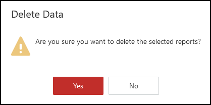An alert displays "Are you sure you want to delete the selected reports?".