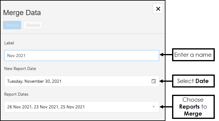 - From the Report Dates drop-down list select the Reports to merge.
