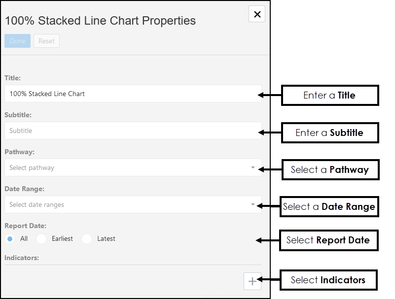 - Select from the Indicator drop-down list, to choose a line to report on.