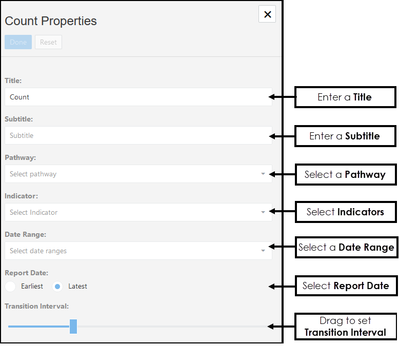 - If there are multiple extract dates, the Count displays as a slide show, drag the Slider to set the Transition Interval between the views.