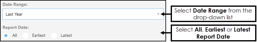 - Earliest - This returns the first month's data, for example, if Last Year was the Date Range, the Widget displays data only for January. *