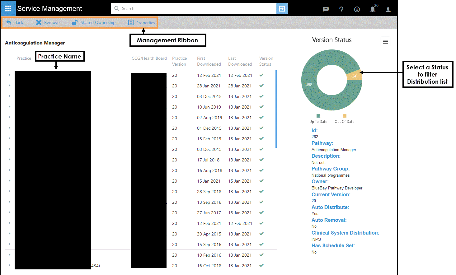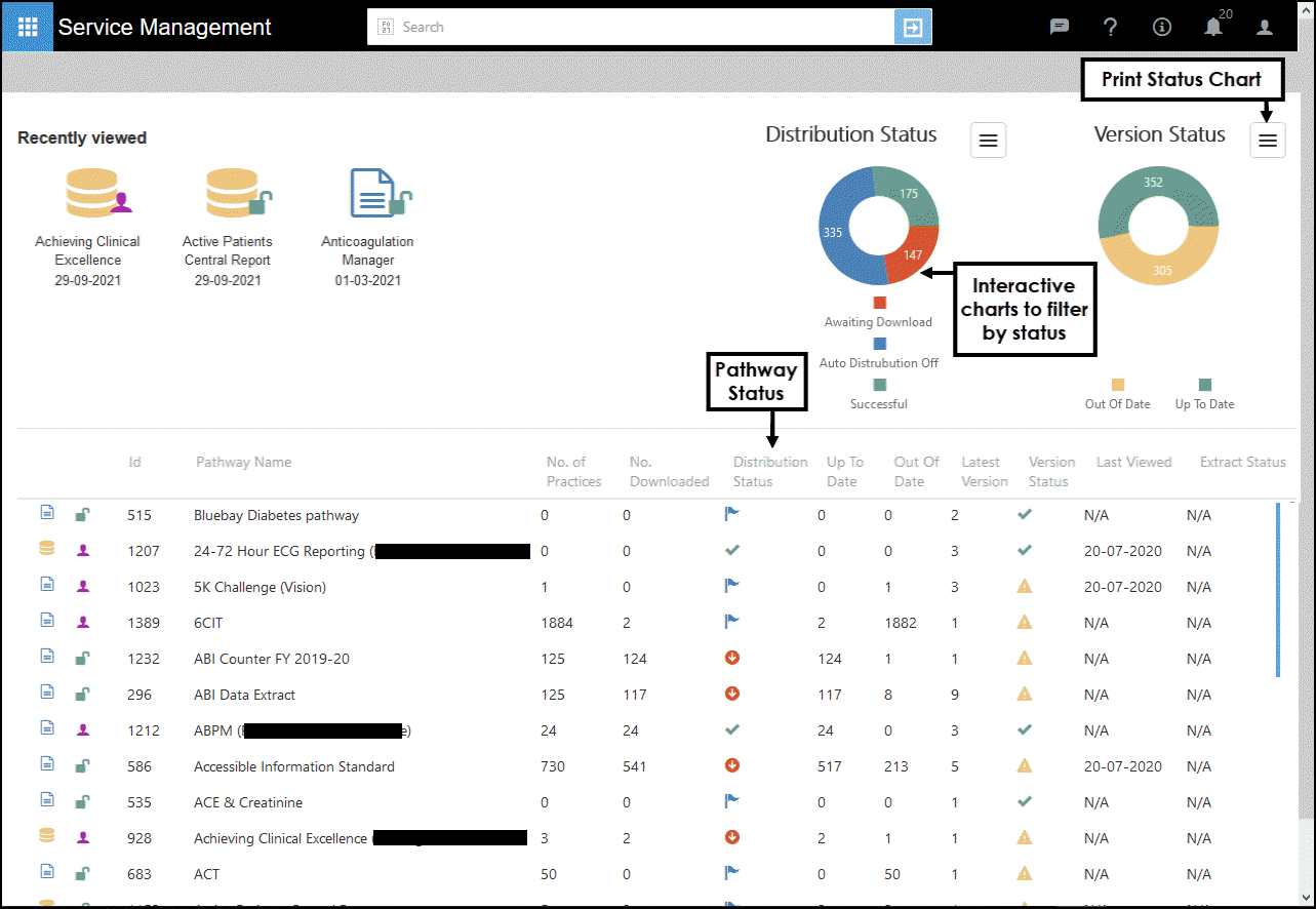 Select a Pathway to view the Practice Distribution list and Status.