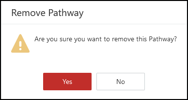 A notification displays "Are you sure you want to remove this Pathway?". -
