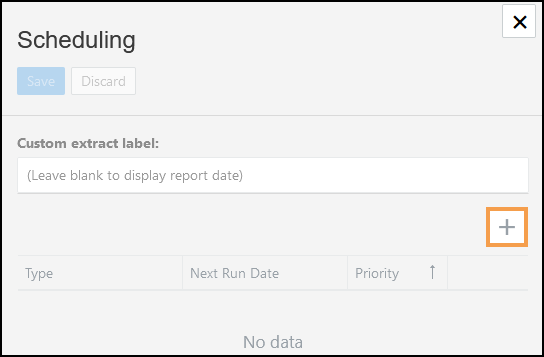 See - Custom Extract Label . - Select + to Schedule an extract.