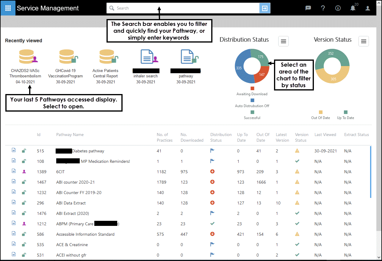 Service Management enables your organisation to monitor and control the distribution of any new and existing pathways.