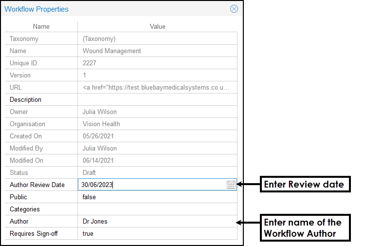 to generate a reminder to inform the Author that the Workflow is due for review.