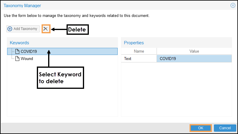 - Open the Taxonomy Manager pop-up.