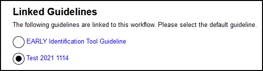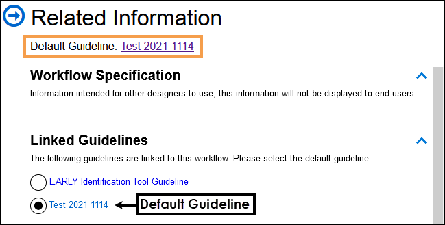 The Related Information header details the Default Guideline, and the Linked Guideline section displays all the guidelines linked from the Workflow.
