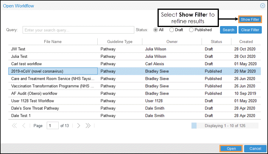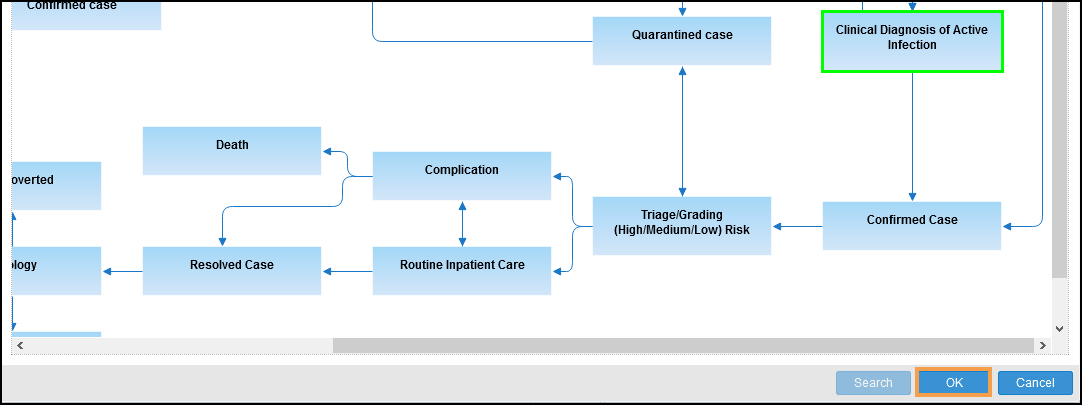 The Workflow displays in read-only mode. - Choose the node to link to.