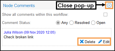 in the top right hand corner of the Node Comments pop-up to close.