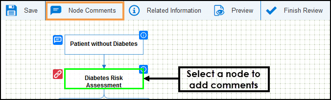 - Select either Node Comments from the toolbar or the Speech Bubble to the left of the node.