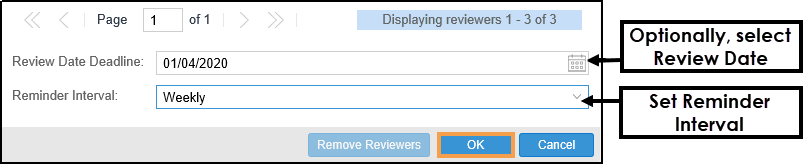- Optionally, select a date from the Calendar to set a Review Deadline.