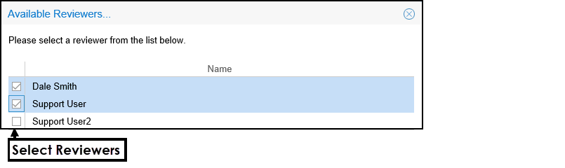 The Reviewers List pop-up displays. - Select Reviewer(s) from the list.
