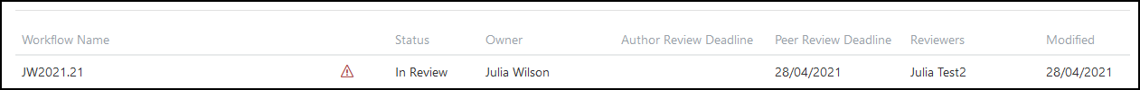 For example, a specific Owner and Peer review overdue. - Select Apply Filter.