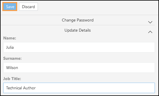 - Select Update Details to change your name and/or job title.