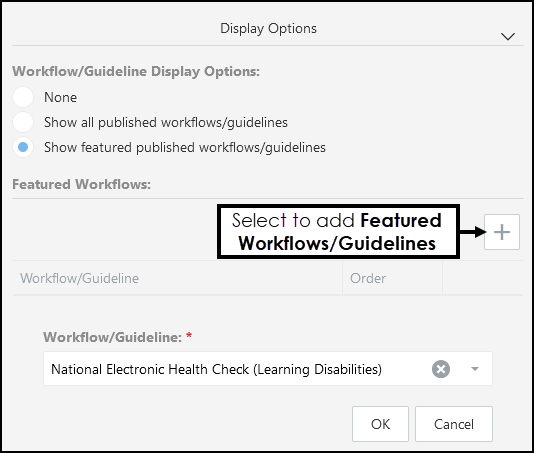 - From the drop-down list choose the Workflow/Guideline(s) you want to feature: