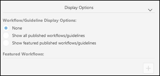 See - Formatting for more information. - The Home page includes a Display Options section, these settings define which Workflows/Guidelines display on the Home page: