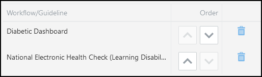 - Optionally, use the Arrows to change the order of the Workflows/Guidelines.