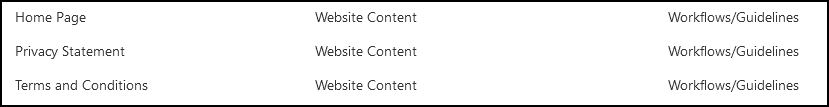 - Select the relevant Website Content from the list, followed by Edit Website Content from the toolbar.