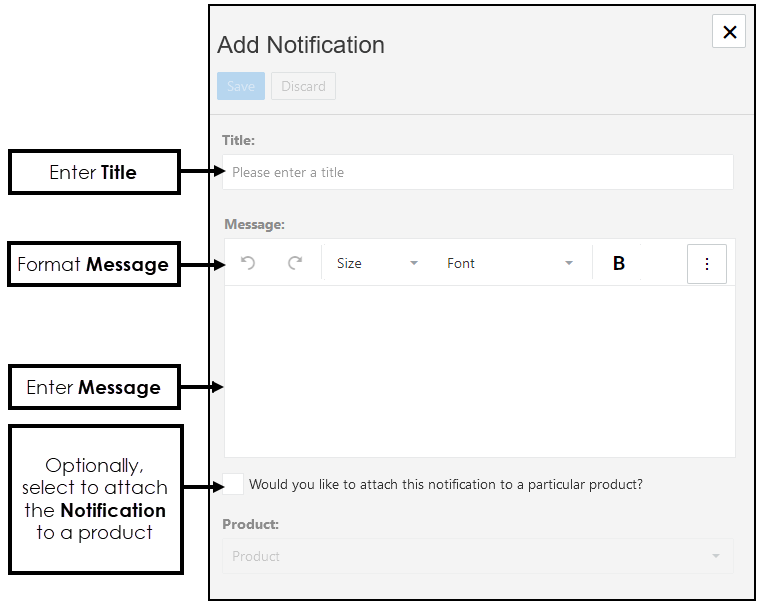 See - Formatting for more information. - Optionally, select "Would you like to attach this notification to a particular product?" to change the image to a specific product, for example, Pathway Developer.