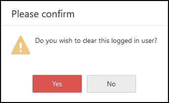 An alert displays "Do you wish to clear this logged in user?".