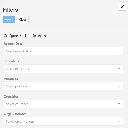 - Select the drop-down arrow next to the appropriate field to define the Filter settings.