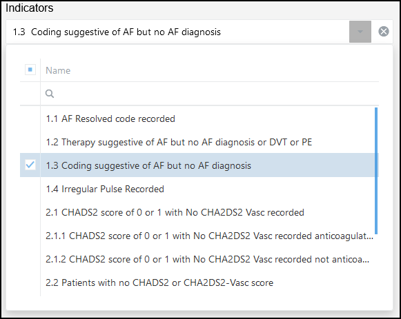 To select multiple Indicators, use the CTRL key while selecting or select the check box which is visible when you hover.
