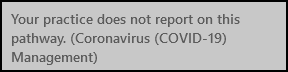 If the Dashboard contains a widget relating to a pathway that the practice doesn't report on a notification displays ' Your practice does not report on this pathway, (pathway name)'.