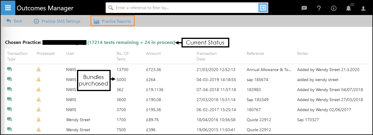 Outcomes Manager SMS Reporting provides tools to view reports within your organisation or practice to analyse SMS usage.