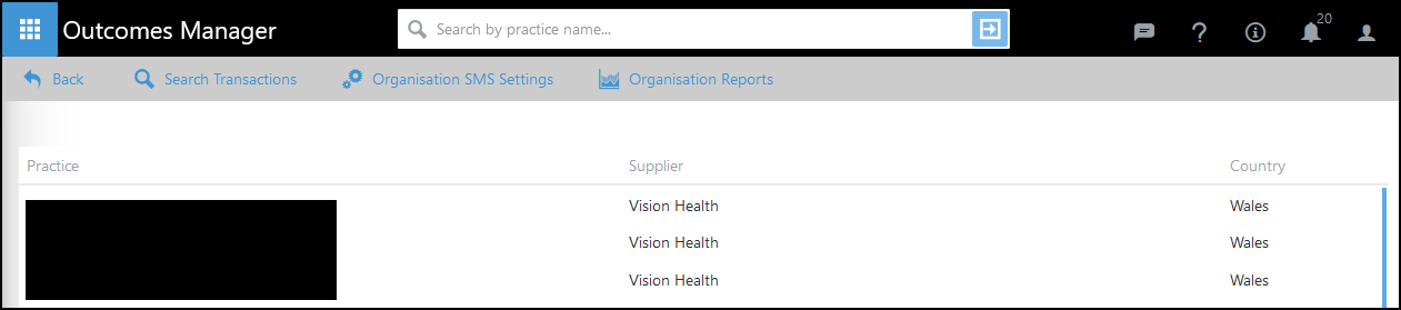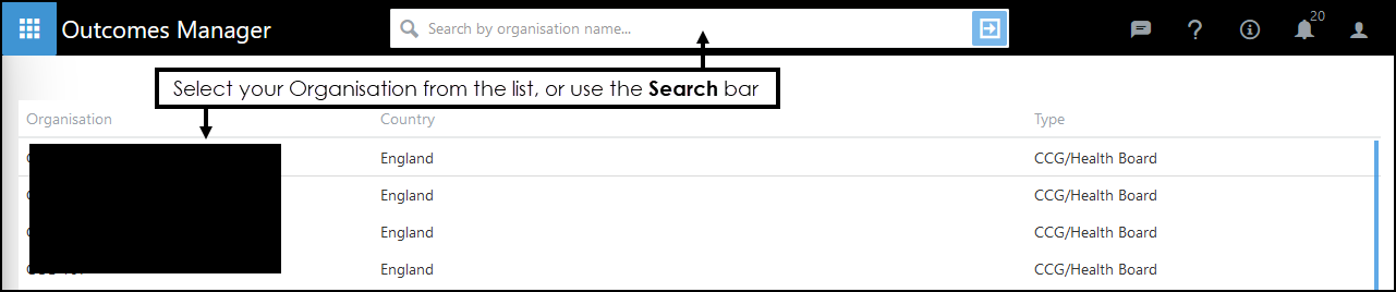 - If you are responsible for several different organisations, search for your organisation or select the relevant organisation from the list to view the SMS Dashboard.