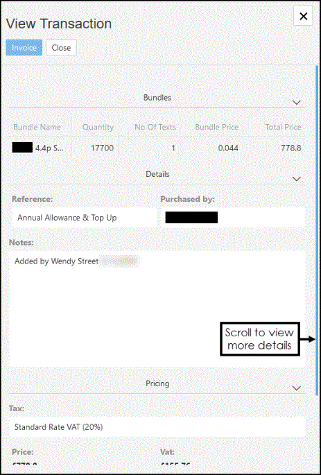 - Optionally, select a Transaction, followed by View Transaction to view more information.