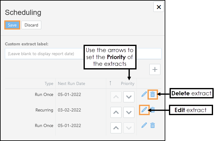 In the event of multiple extracts, use the Priority arrows to set the order of importance.