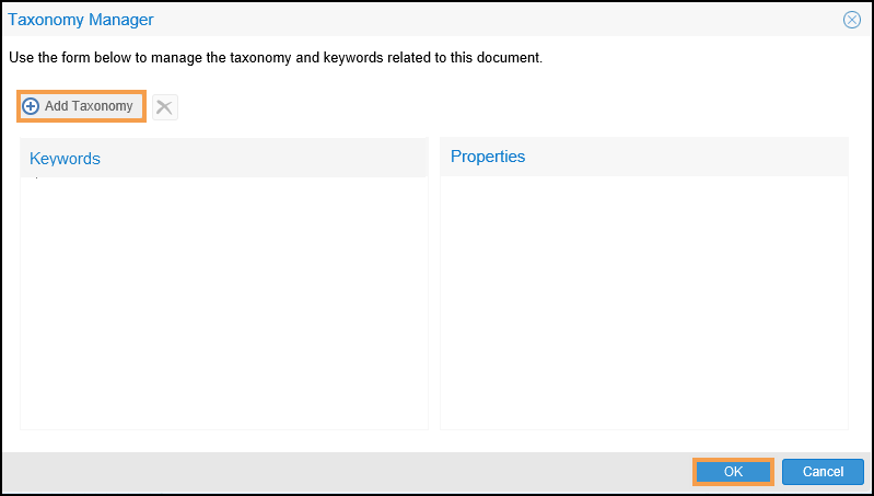 See - Workflow Properties. - Select Taxonomy.