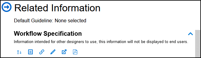 The Workflow Specification section of the Related Information view is for information/documents etc relating to the design of the Workflow and is not visible to end users.