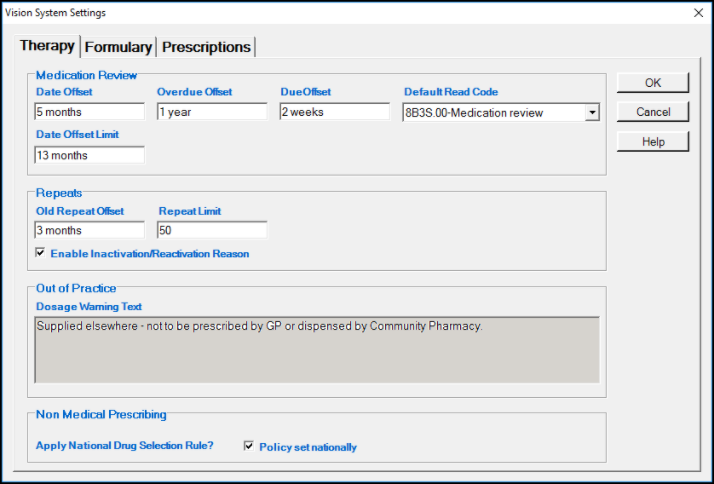 - In Repeats - Old Repeats Offset, enter a time span, for example, if you select an offset date of ‘3m’, patients can only order repeat prescriptions issued within the last 4 months. Repeats not issued within this time display on the Unavailable list.