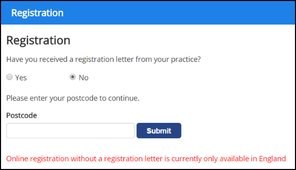 It is now possible to register to use Patient Services without visiting your practice.
