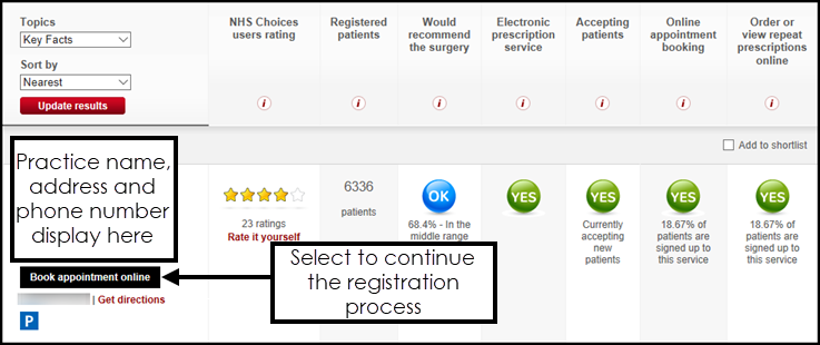 - A list of surgeries in your area displays. Find the surgery you are registered with and select Book appointment online: