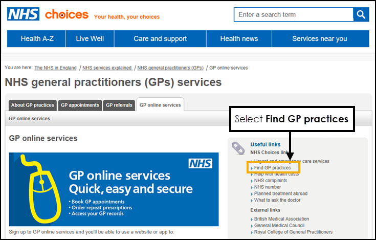 - From your internet browser, go to www.nhs.uk/GPonlineservices or select the link from your online services registration email.