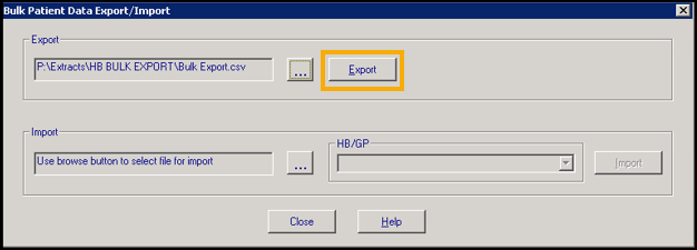 You are returned to the Bulk Patient Data Export/Import screen, select Export: