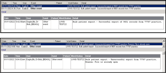 An Event Log entry is made for any export attempt: